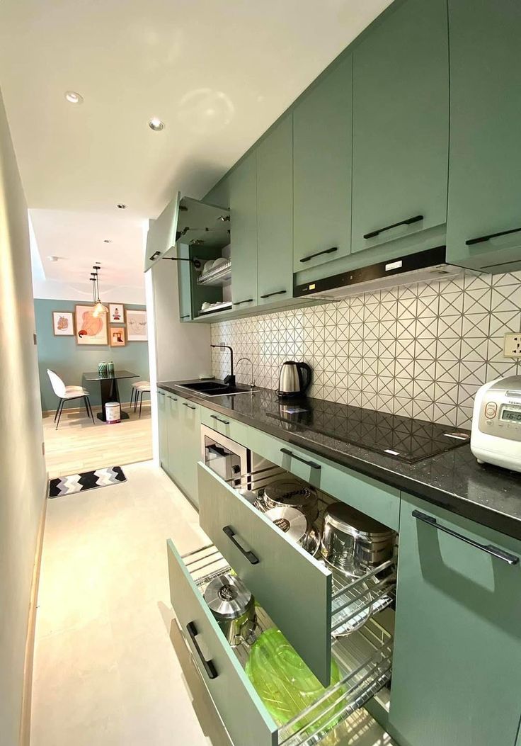Ưu tiên gam màu sáng, sofa gọn, bàn trà nhỏ, bếp chữ L.